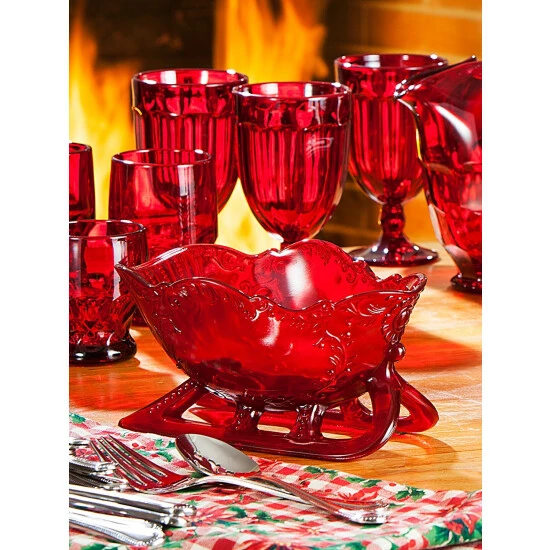 This ruby-glass sleigh centerpiece will highlight your table with old-world appeal, Christmas after Christmas. Create a family tradition by filling it with something different every year-ribbon candy, ornaments, fruit and greens, candles, or potpourri. Made in the USA by Mosser Glass from vintage molds that complement our ruby glassware. 6″x9ΒΌ”x5″. Hand wash only.
