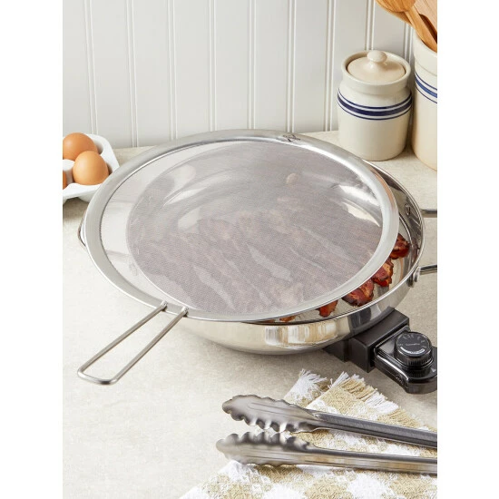 We all know how messy cooking bacon and frying foods can be. This sturdy stainless splatter guard has a fine mesh screen that keeps the grease and oil where it belongs—in the pan. No more time spent cleaning up greasy stovetops and countertops…and it’s safer, too.