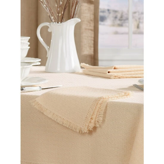 These sturdy, practical napkins recall the homespun fabric that was hand-loomed in the mountains of Vermont over 150 years ago. The cotton is grown in America and woven on 150-year-old traditional looms by master weavers in New England and then each piece is individually cut and hand fringed here in Vermont. When washed, the cotton softens and the weave tightens, which gives our Mountain Weave linens their homespun look and feel. For best results, follow the care instructions below.*
