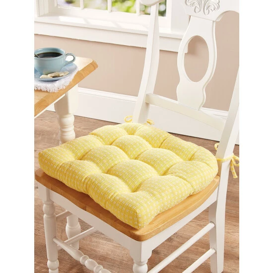 We know how much you love the traditional look and enduring quality of our Mountain Weave Table Linens, so we decided to offer our never-flatten chair pads in the same premium fabric. Each thick cushiony pad is filled with 2-1/2″ of resilient latex foam and tufted to keep the fill from shifting and has two ties to keep it securely in place. Available in two sizes: standard and jumbo.