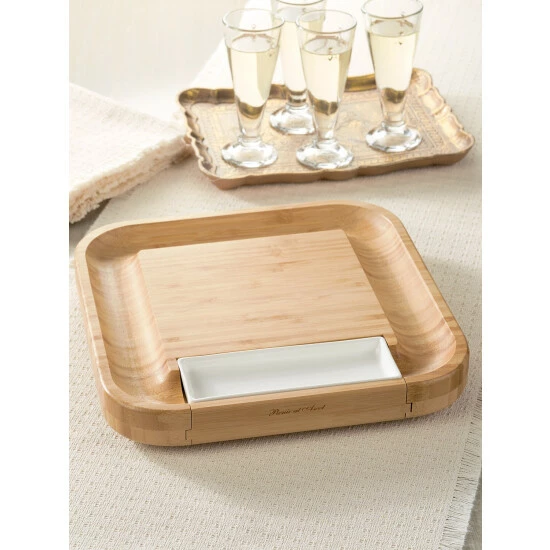 This versatile set includes three natural slate cheese markers, two pieces of soapstone chalk, four stainless steel cheese tools, and one shallow ceramic dishโeverything is stored neatly in the pull-out drawer! Use it as a cheeseboard or a handy food prep cutting board. Great for camping and RV travel. Makes a great gift, too!