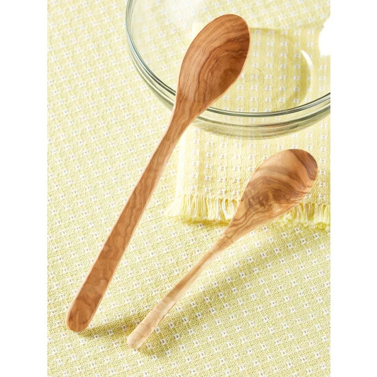 These gorgeous spoons are too pretty to hide in a kitchen drawer! Show them off in a utensil holder and keep them close by because you’re going to find that you’ll use them every day. They’re perfect for serving and for stirring everything from soups to sauces…and batters too. They won’t scratch and they’re safe to use on nonstick cookware. Since olivewood is a hard, durable wood, these spoons will last and last. All they need is an occasional coating of mineral oil to keep them looking their best.
