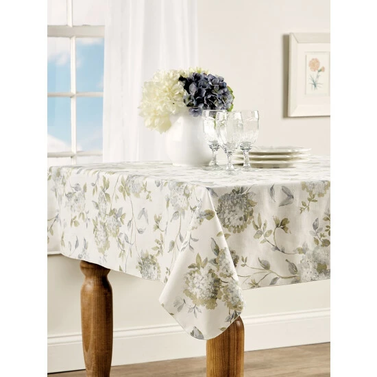 Everyone loves a summer garden! And no summer garden is complete without big, beautiful hydrangea abloom in soft blues, pinks, and creams. The same billowing blooms grace our Whispering Hydrangea Tablecloth to give your kitchen or dining room a fresh, delightful look. And since the tablecloth is woven from a durable polyester/cotton blend, it’s ideal for everyday use and washes with ease. For even greater impact, pair the tablecloth with the coordinating window treatments, throw pillow, and chair pads, sold separately.
